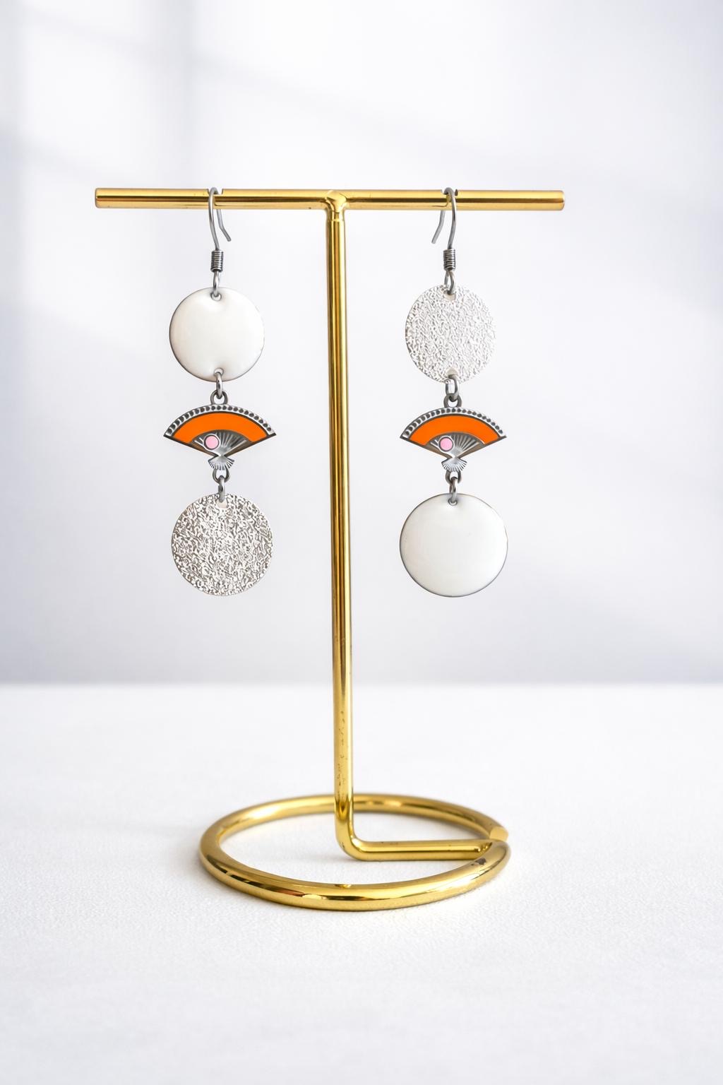 Eventails oranges en acier inoxydable.